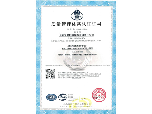 • 09-28弋陽大鵬機械制造有限責任公司成功取得規(guī)范